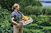 TIL GARDS: Marianne Olssøn ønsker gjester velkommen til besøkshagen og gårdsbutikken på Helgøya, fire mil fra Hamar.Foto: PRIVAT
