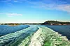 KONTINENTET NESTE: Utsikten fra akterdekket på ferga til Hirtshals, med syklene klare under dekk – etter god hjelp fra Terje Bredal (bildet i midten over).Foto: GETTY (nederst) og LUDVIG RINGDAL