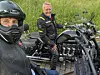 Ludvig på en vintage Harley og vintage-pappaen på et monster av en Triumph Rocket med 2500 kubikk, velvillig utlånt av Norges blideste butikksjef, Terje Bredal på Speed Motorsenter i Sandefjord. Dette er mannen som stilte opp med et monster av en batterilader da jeg fikk motorstopp utenfor Sandefjord. Perfekt, egentlig, at det ene problemet som dukket opp på turen, skjedde omtrent utenfor huset til Bredal.