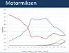 Nedgangen i dieselmarkedet startet så smått i 2011. Deretter har kurven pekt bratt nedover. I 2014 var 48,8 prosent diesel, i 2015 sank dette til 40,9 prosent og i år styrer vi mot 30 prosent.