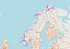 Hvis du klikker på denne lenken kan du se norgeskartet hvor veiene uten stripe er markert.