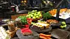 Her bærer mye preg av å være hjemmelaget. Kjøtt og fisk stekes på huset. Alle salater er blandet her. Kakene er hjemmebakte. Eneste minus er at en del blir stående under varmelampene hele dagen.